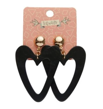 Erstwilder Pete Cromer Wildlife Textured Resin Heart Drop Earrings Black
