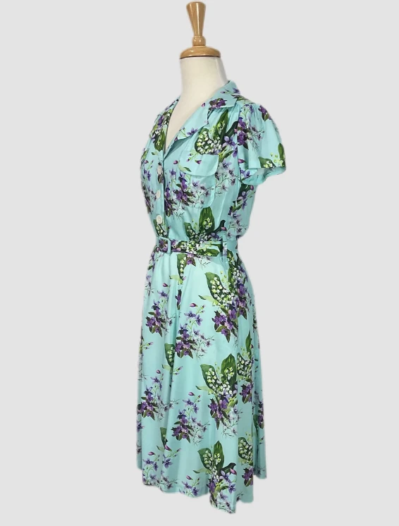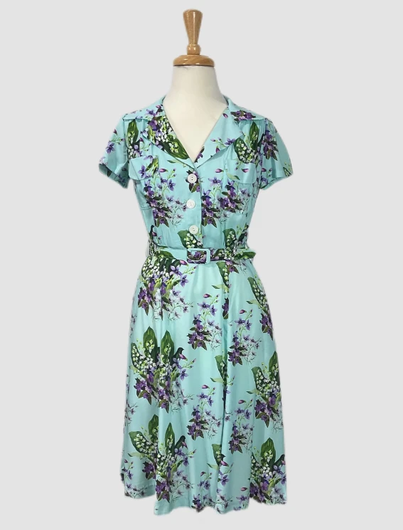 Oh la la! This classic chic 1940’s inspired dress is sure to have you stopping traffic! This shirt dress is generous in the bust and has pockets on the bodice. It has a panelled A line skirt, side seam pockets and matching belt.
